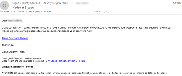 One good way to learn how to spot phishing attempts is to analyze real-world examples. As mentioned earlier, pandemic-related phishing attempts have emerged in the last year, so we’ll look at some examples of those to help you stay current.